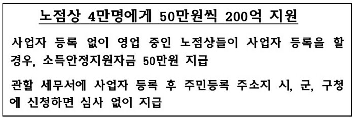 노점상에게 재난지원금을 지급합니다.