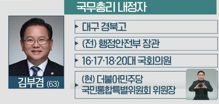 김부겸 총리는 4선 국회의원으로 이낙연, 정세균 총리에 이어 문재인 정부의 3번째 총리로 지명됐습니다. 문재인 정부 초대 행정안전부 장관이자 TK 출신 총리입니다.