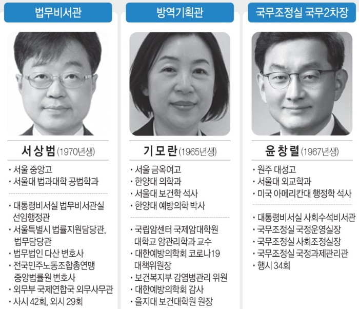 대통령 대변인에 박경미 교육비서관, 법무비서관에 서상범 법무비서관실 선임행정관, 방역기획관에 기모란 국립암센터 교수를 내정했습니다.