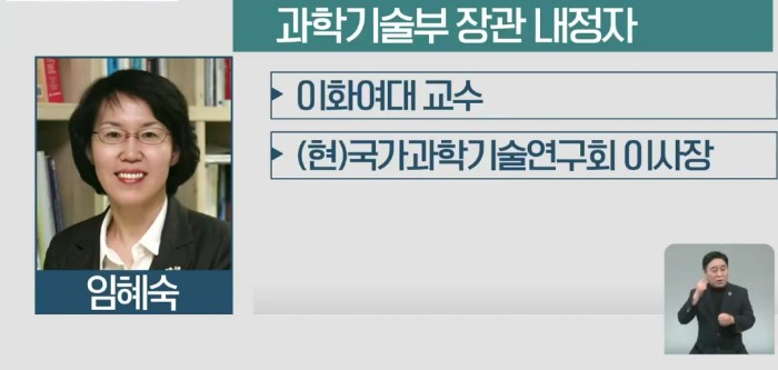 과기부 : 최기영 장관 ➡ 임혜숙 (국가과학기술연구회 이사장)