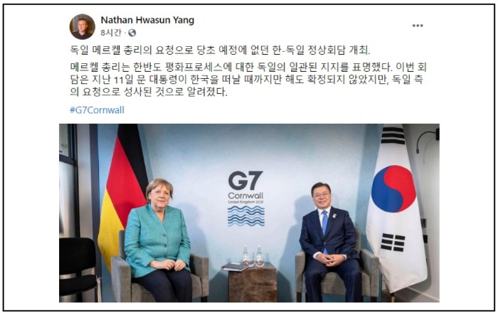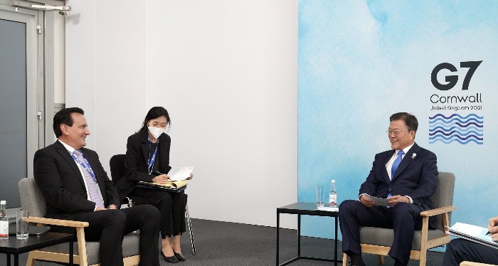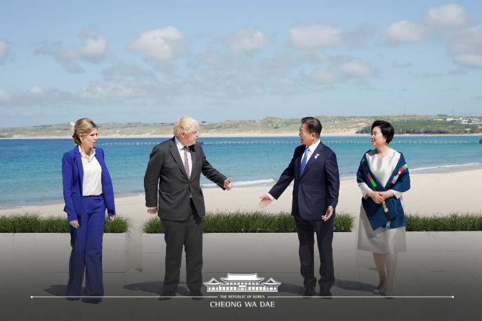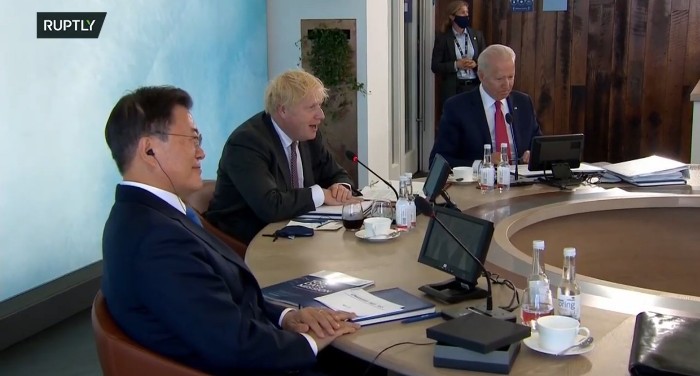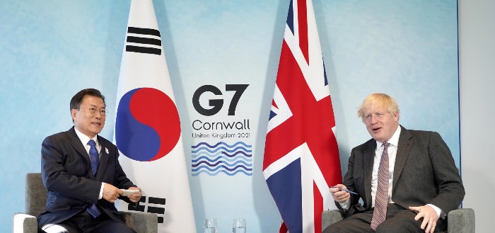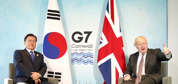 6월 13일 문재인 대통령은 G7 정상회의 의장국인 영국의 보리스 존슨 총리와 정상회담을 가졌습니다.