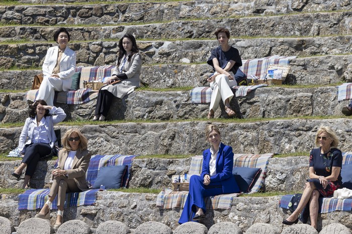 김정숙 여사는 영국 캐리 존슨 여사가 주최하는 배우자 프로그램에 참석했습니다. 참석자는 김정숙 여사와 영국 캐리 존슨 여사, 미국 질 바이든 여사, 일본 스가 마리코 여사, 독일 요하임 지우어 부군, 프랑스 브리짓 마크롱 여사 등입니다.