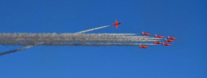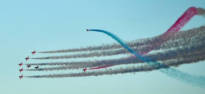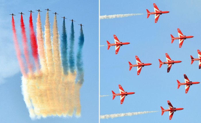 문재인 대통령과 김정숙 여사는 6월 12일 저녁 G7 정상회의가 열린 영국 콘월주 카비스베이 상공에서 영국 공군 특수비행팀 The Red Arrows가 펼친 축하 비행을 관람했습니다.
