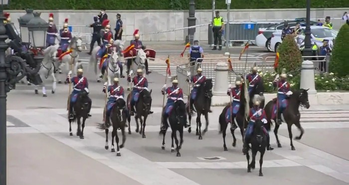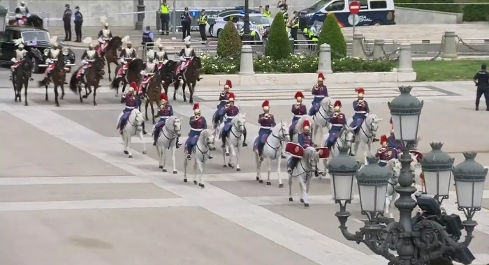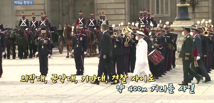 이날 스페인 공식 환영식의 양국 국가연주, 의장대 사열, 왕실근위대 및 기마병 분열 등은 스페인 왕실의 전통 의전에 따라 진행된 것입니다.