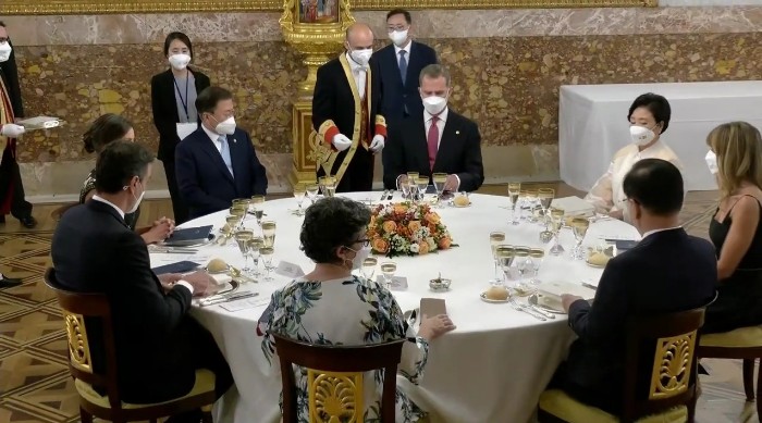 펠리페 6세 국왕 부부가 주최한 국빈만찬에 총리 부부, 상하원의장, 헌법재판소장, 대법원장 등 주요 인사들도 참석하여 문재인 대통령 부부를 환대했습니다.