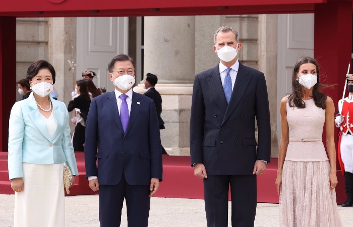 펠리페 6세 국왕과 산체스 총리가 직접 문재인 대통령 내외를 영접할 예정이며, 펠리페 6세 국왕이 주최하는 공식 환영식에 참석합니다.