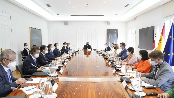 친환경 에너지 선도국가인 스페인과 디지털 강국 한국의 만남은 포스트 코로나 시대의 핵심인 그린·디지털 분야를 중심으로 경제 협력 분야에서 시너지를 낼 것입니다.