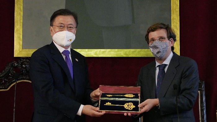 마드리드 시장, 문재인 대통령에게 황금열쇠 선물