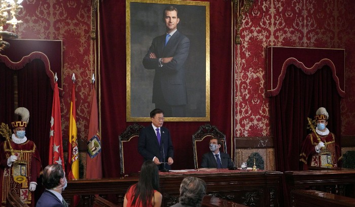 문재인 대통령은 "이번 스페인 방문을 통해 역동적이고 창의적이며, 가족과 이웃, 공동체의 가치를 사랑하는 양국 국민들의 공통점을 다시 한번 느낄 수 있었습니다. 스페인은 포용과 상생, 이해와 협의를 통해 국제적 분열을 해소하는 ‘연결국가’를 추구합니다. 한국은 대륙과 해양을 잇고, 선진국과 개도국을 연결하며 아시아의 평화와 번영의 질서를 선도하는 ‘교량국가’를 꿈꿉니다. 진실로 스페인과 한국은 놀라울 정도로 닮았습니다.