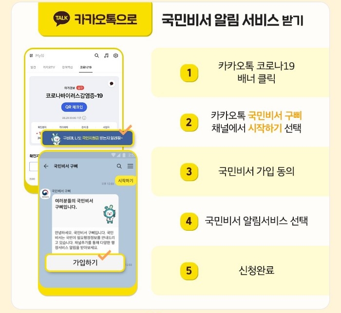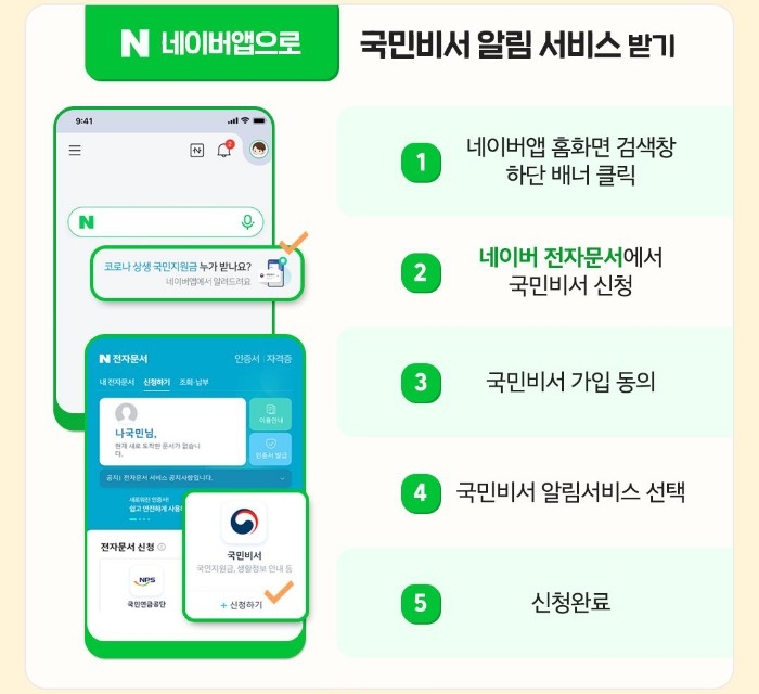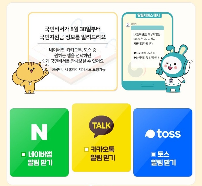 국민비서 ‘구삐’ 사전알림은 네이버앱, 카카오톡, 토스 및 국민비서 홈페이지에서 요청할 수 있으며, 9월 5일 오전부터 순차적으로 안내 받을 수 있습니다.