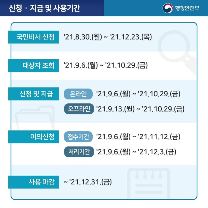 ➎ 국민지원금 사용기간 (12월 31일까지)