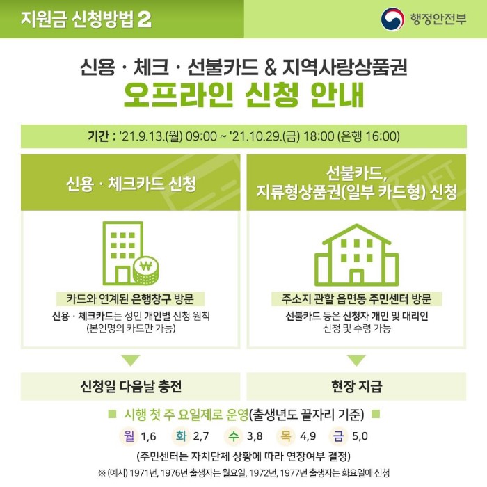 9월 13일부터는 카드와 연계된 은행에서 오프라인 신청이 가능합니다.