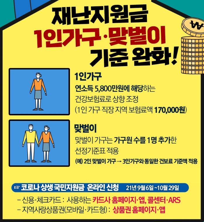 국민지원금은 기준중위소득 180%, 2021년 6월 부과 본인부담 건강보험료 가구별 합산액이 선정기준 이하인 경우 대상자에 해당됩니다.
