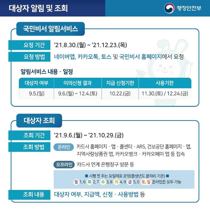 ➋ 국민지원금 대상자 조회 : 9월 6일 ~ 10월 29일