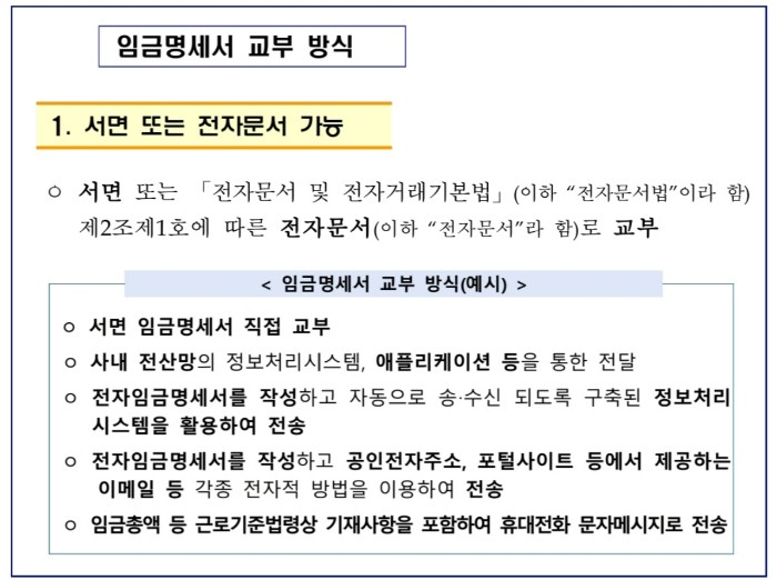 1) 카카오톡이나 문자로 임금명세서를 교부해도 되나요?