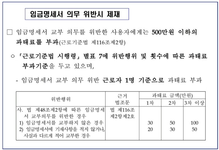 임금명세서 의무 위반시 제재