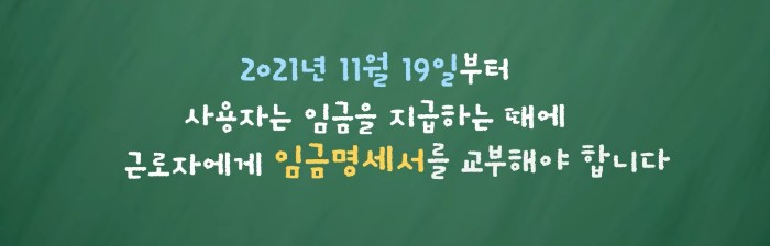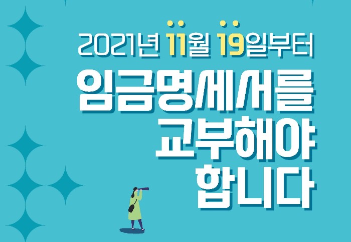 2021년 11월 19일부터 사용자는 임금을 지급하는 때에 근로자에게 임금명세서를 교부해야 합니다.