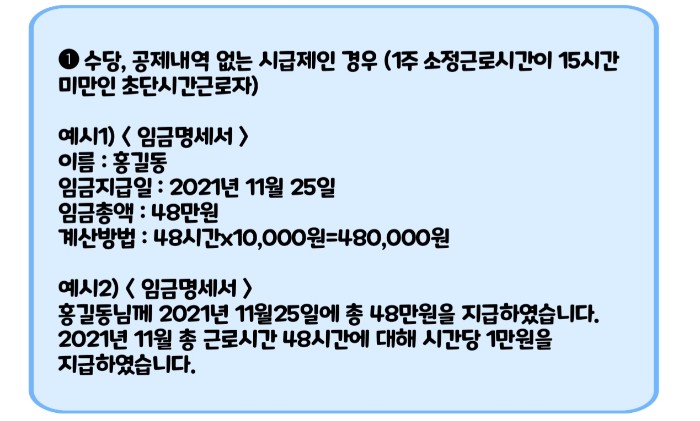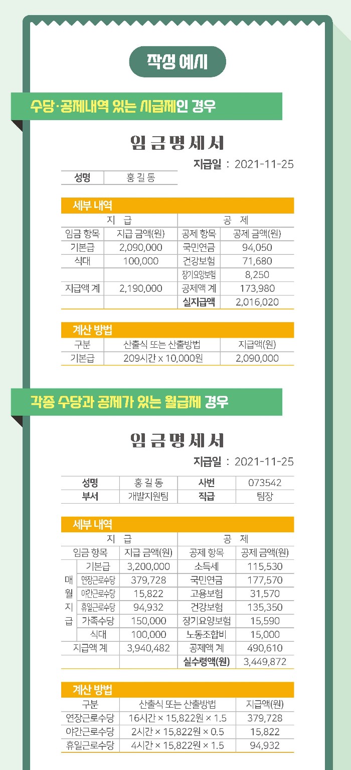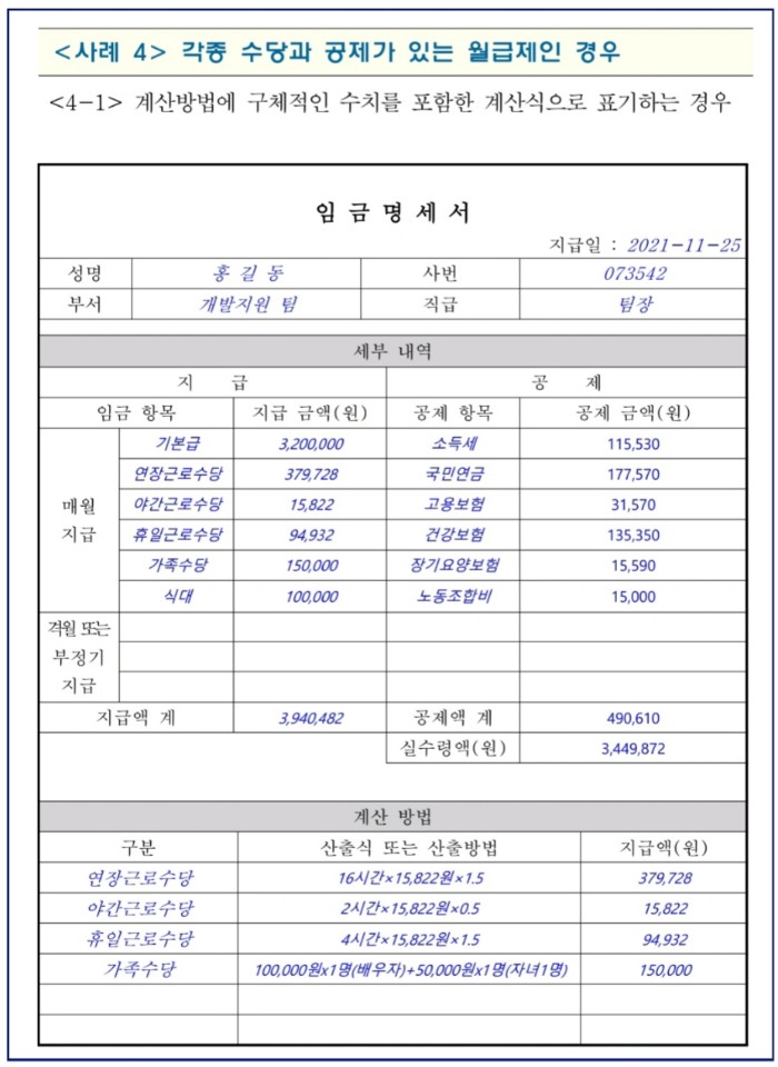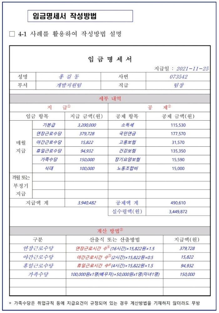 임금명세서 작성방법 예시