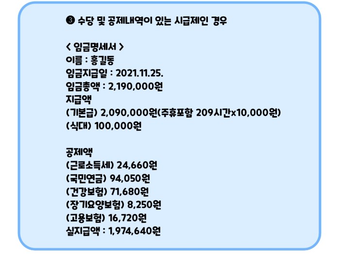 ➋ 수당, 공제내역 있는 시급, 일급제인 경우