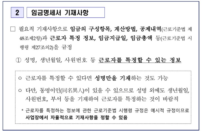 임금명세서 필수 기재사항