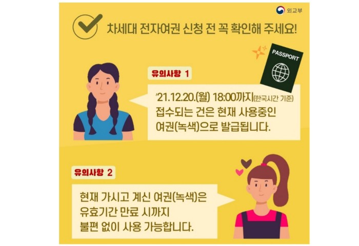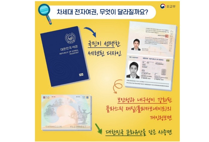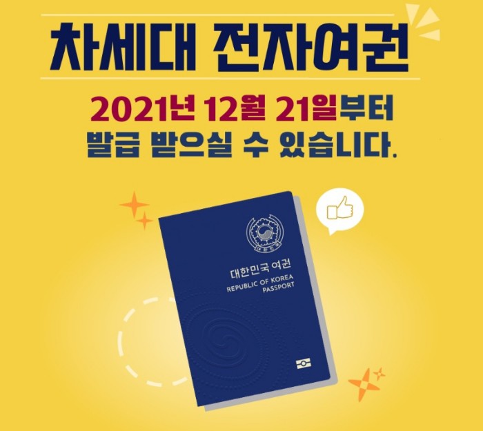 2021년 12월 21일부터 일반 국민을 대상으로 폴리카보네트 타입의 차세대 전자여권 발급을 시작합니다.