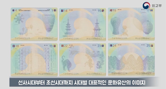 ① 사증면 디자인 : 선사시대부터 조선시대까지 시대별 유물을 배경으로한 디자인으로 변경됩니다.