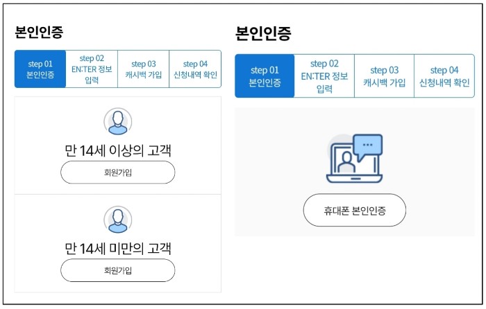 - [만 14세 이상의 고객 회원가입] → [휴대폰 본인인증] 클릭