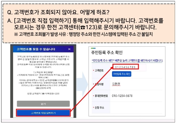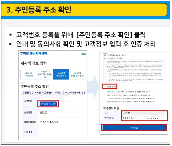 - 고객번호 등록을 위해 [주민등록 주소 확인] 클릭