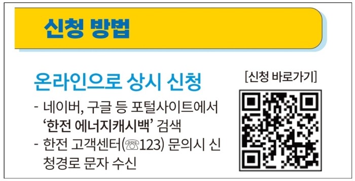 - 온라인신청 : 6월 7일부터 (한전 에너지캐시백 검색)