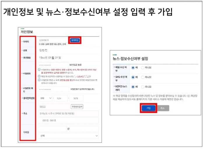 - 개인정보 및 뉴스·정보수신여부 설정 입력 후 가입
