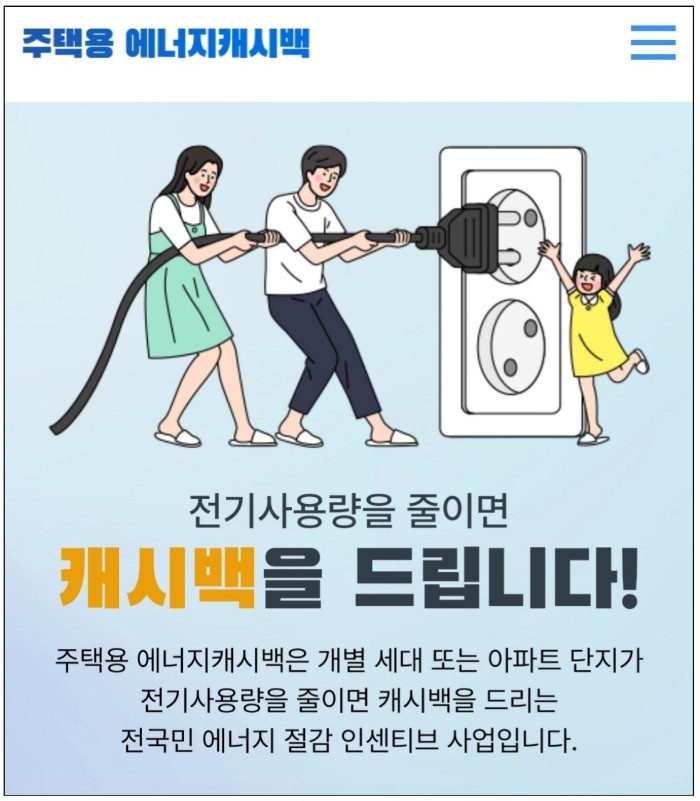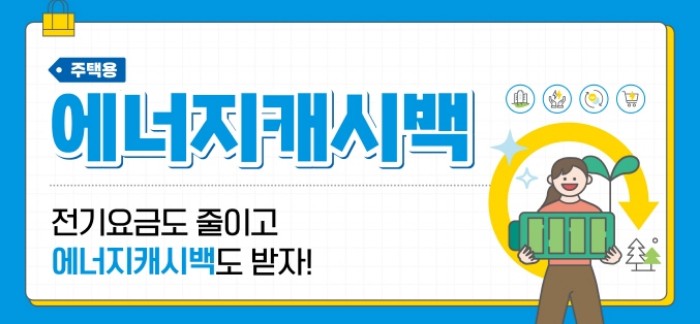 2022년부터 시행 중인 에너지캐시백 제도는 참여 신청한 일반주택 가구, 아파트 개별세대에 비해 전기 사용량을 상대적으로 많이 줄인 경우 절약된 전기 사용량에 따라 현행 기본 캐시백과 신설된 차등 캐시백을 지급 받을수 있는 에너지 절감 인센티브 제도입니다.