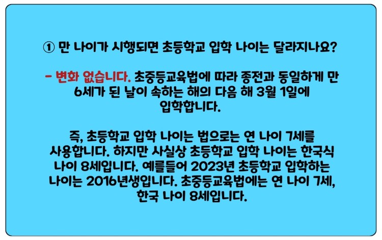① 만 나이가 시행되면 초등학교 입학 나이는 달라지나요?