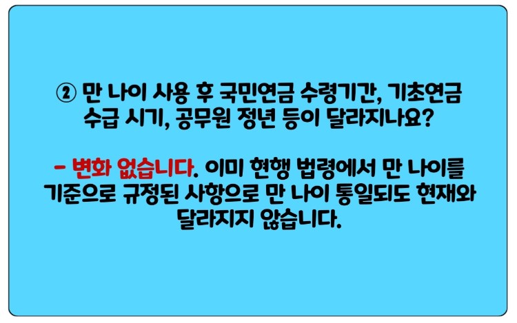 ② 만 나이 사용 후 국민연금 수령기간, 기초연금 수급 시기, 공무원 정년 등이 달라지나요?