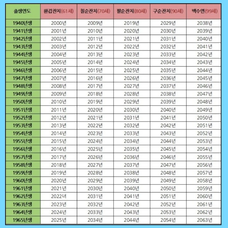 칠순 잔치 = 70세