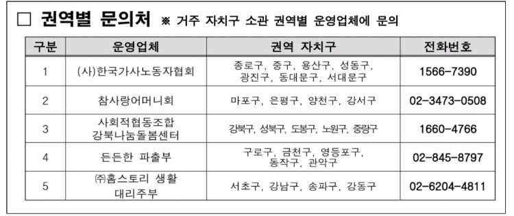 서울형 가사서비스 이용기간은 희망일 신청일로부터