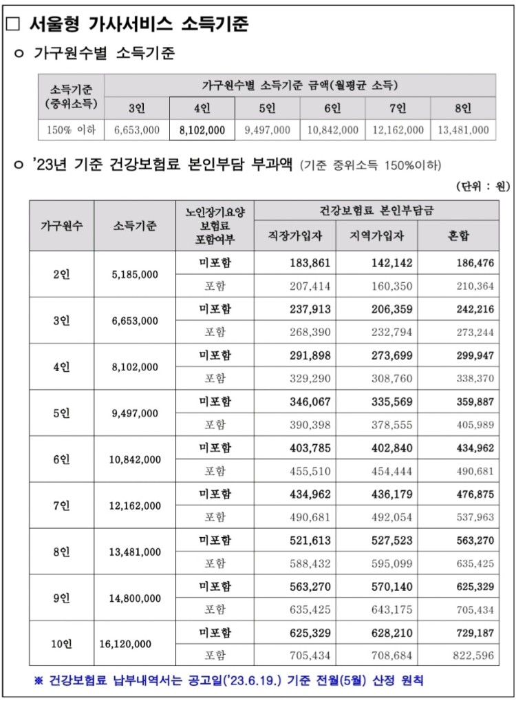서울형 가사서비스 소득기준