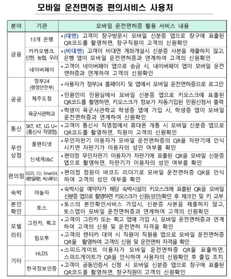 2) 모바일 운전면허증 공공부분 사용처