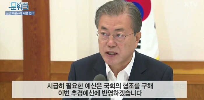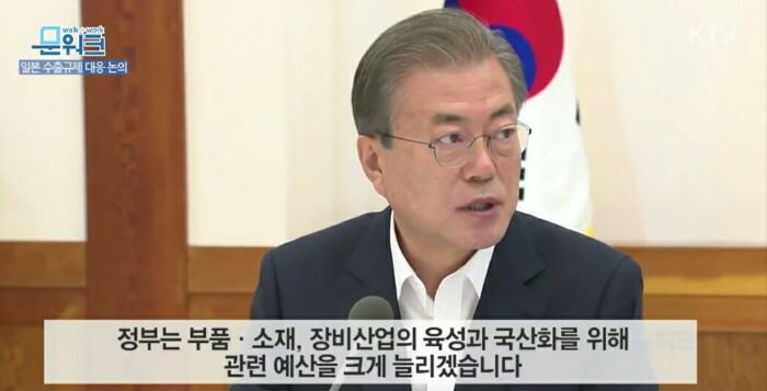 특히 특정국가 의존형 산업구조를 반드시 개선해야 합니다. 정부는 부품, 소재, 장비산업의 육성과 국산화를 위해 관련 예산을 크게 늘리겠습니다. 세제와 금융 등의 가용자원도 총동원할 것입니다.