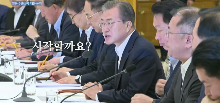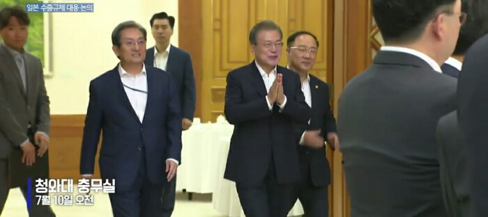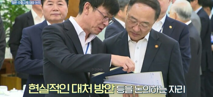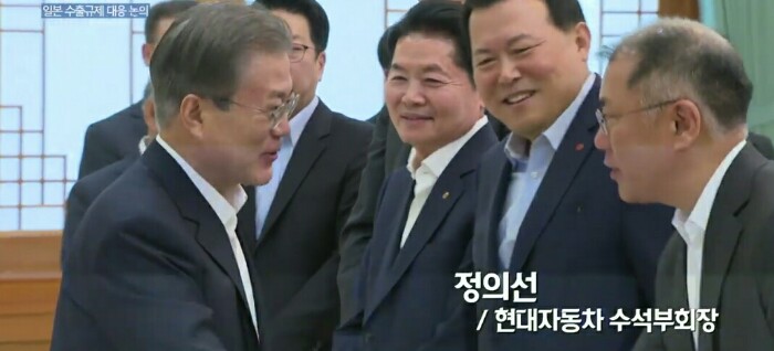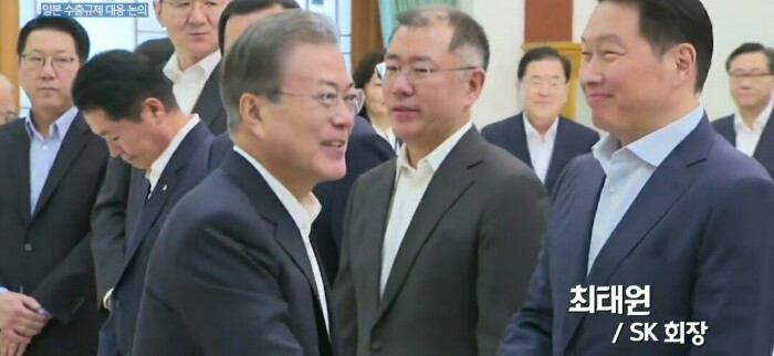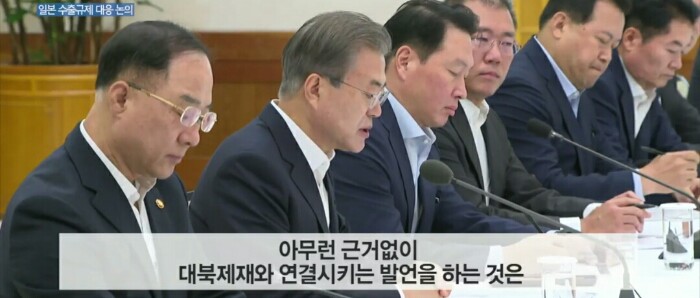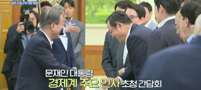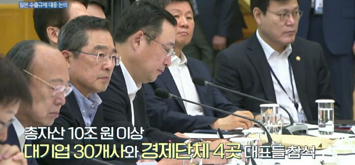 기업인들은 일본 수출 규제와 관련해 단기적 조치, 장기적 조치의 필요성에 공감하며 "단기적 조치를 포함한 모든 조치를 취할 것이다. 중장기적으로 이번 조치가 양국 간 경제 협력 등에 도움이 되지 않는다는 것을 민간 차원에서도 총력을 다해 설득해 나가겠다"고 말했습니다.