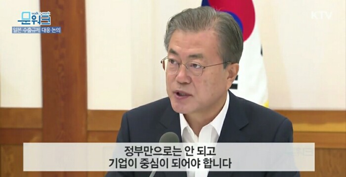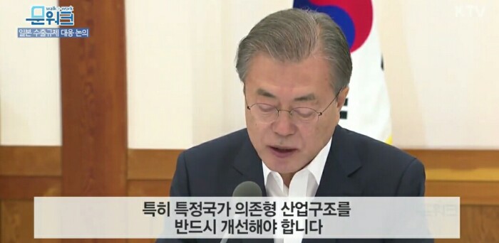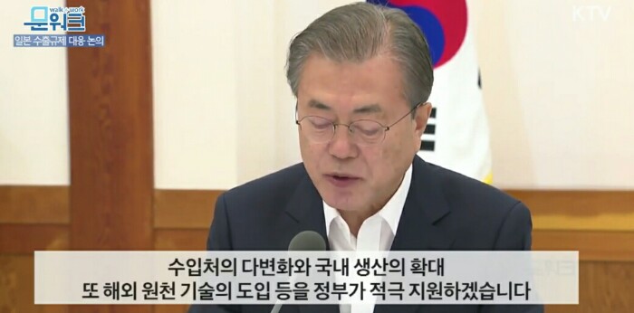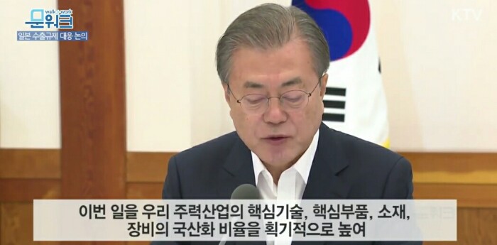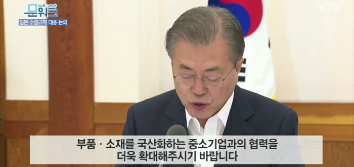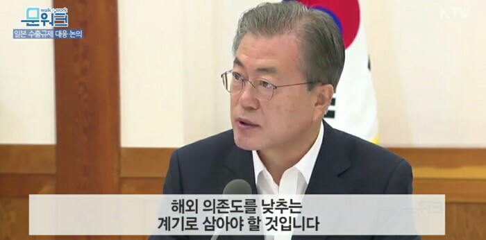 근본적인 대책으로는 이번 일이 어떻게 끝나든, 이번 일을 우리 주력산업의 핵심기술, 핵심부품, 소재, 장비의 국산화 비율을 획기적으로 높여 해외 의존도를 낮추는 계기로 삼아야 할 것입니다.