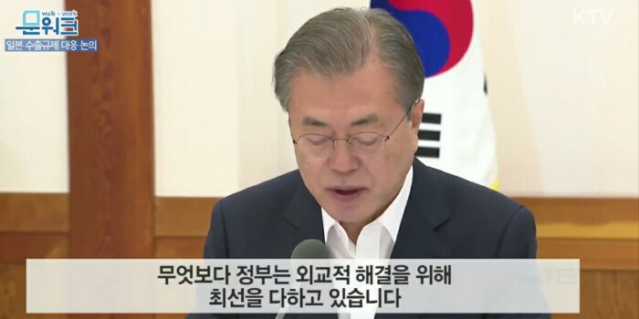 우리 정부는 일본의 부당한 수출 제한 조치의 철회와 대응책 마련에 비상한 각오로 임하고 있습니다.