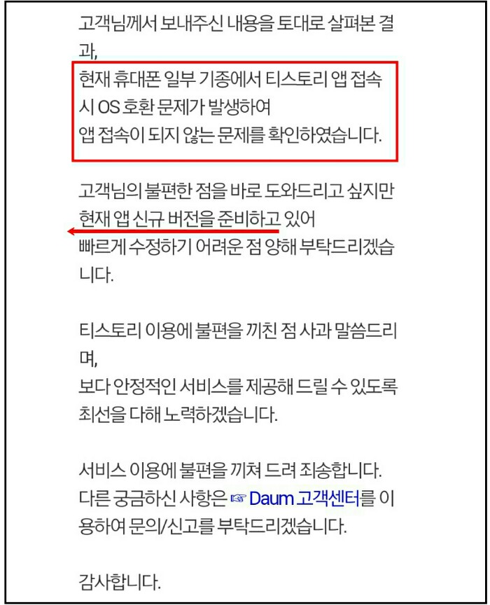 < 티스토리 다음 고객센터 답변>