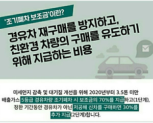 갈수록 심해지는 미세먼지와 자동차 매연을 어떻게 줄일 수 있을까? 수도권 및 대도시 미세먼지의 주요 배출원 1위는 경유차 26%, 2위는 건설기계 등이 18%를 자치합니다. 정부는 국민의 건강과 일상생활에 치명적인 악영향을 주는 미세먼지로부터 쾌적한 대기환경조성을 위해 오염물질을 다량 배출하는 노후 경유차, 노후 건설기계 등을 대상으로 ① 노후 경유차 조기폐차, ② 저공해엔진 개조, ③ 배출가스 저감장치 부착 등에 소요되는 비용을 정부가 지원하는 배출가스 저감사업을 진행하고 있습니다. 먼저 노후경유차 조기폐차 보조금 지원은 지자체별 지원대상에 차이가 있을 수 있으니 세부 내용은 각 지자체 홈페이지를 참고하기 바랍니다. 다음은 서울 등 수도권 기준 2020년 노후경유자동차 조기폐차 보조금 지원 내용입니다...