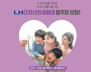 1. 다자녀 전세임대주택이란?2명 이상 미성년 자녀를 가진 저소득 가구가 전세임대주택의 입주대상자로 선정되어 지원한도액 범위 내에서 전세 주택을 결정하면 한국토지주택공사(LH)가 해당 주택 소유자와 전세계약을 체결하고 이를 입주대상자에게 재임대하는 주택입니다. 2. 다자녀 전세임대주택 신청기간 및 신청장소 - 신청기간 : 2020년 2월 26일 ∼ 2020년 3월 3일 - 신청장소 : 주민등록지 주민센터, 읍면동사무소 - 토요일, 일요일은 신청 접수받지 않는다. - 임대기간 : 2년 최초 임대기간 경과 후 2년 단위로 9회 재계약 가능하며, 최장 20년동안 거주할수 있습니다. 단, 재계약시점에 적용되는 소득 및 자산기준 등을 충족하지 못할 경우 임대보증금 및 임대료가 할증될 수 있습니다. - 입주대상자 ..