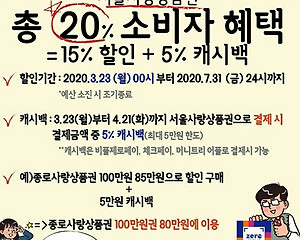 서울시는 지역소비를 활성화시키고 소상공인과 자영업자들에게 실직적인 도움을 주기 위해 서울지역 모바일화폐 서울사랑상품권을 발행합니다. 3월 26일 기준 서울사랑상품권 해택과 이벤트를 시작한다. 1. 서울사랑상품권 월별 할인구매한도는 50만원 → 100만원으로 확대한다. 소상공인 결제수수료 0% 서울사랑상품권의 월별 할인 구매한도는 지난 2월 20일부터 자치구별로 50만원에서 → 100만원으로 늘렸습니다. 이로 인해 할인혜택도 매월 2배로 올랐습니다. 소비자 해택뿐만아니라 소상공인에게도 혜택이 있습니다. 제로페이 가맹점 소상공인은 연매출과 상관없이 상품권 결제 건에 대해선 결제수수료를 0% 면제 받습니다. 아울러 부가가치세 납부세액 공제대상에 서울사랑상품권 결제액이 포함돼 세 부담 완화에도 도움이 됩니다. ..