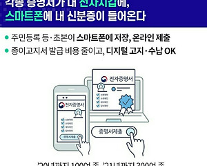 1. 전자증명서란? 전자증명서 서비스는 주민등록표등초본 등 각종 증명서를 전자문서 형태로 스마트폰에 저장했다가 은행이나 관공서 등에 온라인으로 제출할 수 있는 서비스입니다. 종이문서로만 발급받을 수 있었던 증명서와 확인서를 전자증명서 형태로 발급할 수 있고 공공기관과 은행, 지자체 등에 제출할 수 있게 됩니다. 스마트폰의 전자문서지갑에 보관했다가 필요할 때 마다 사용할 수 있어 다양한 증명서 제출이 쉬워지게 됩니다. 예를들어 아르바이트를 위해 신분증명서를 제출할때 스마트폰으로 발급받은 신분증명서를 제출하면 됩니다. 또한 은행에서 요구하는 각종 증명서들을 스마트폰의 전자문서지갑에 보관된 전자증명서를 제출하면 됩니다. 전자증명서의 기본 구조는 스마트폰에 전자문서지갑을 설치해 발급받은 증명서를 전자증명서로 보..