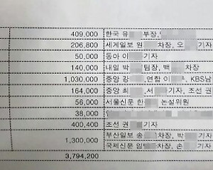 -"돈에 환장한 적폐 일보들" -"MB 꼼꼼하기도 하지." -"뇌물죄다.다 쳐 넣어라" -"역시 조중동 놀랍지도 않아요" MB, 조중동 중심으로 관리한 정황과 수십만 원 상당 접대부터 격려금에 추석 귀향비까지 받은 기자들 처벌 없다. 미디어오늘은 검찰이 언급한 언론인 청탁과 관련해 2006년경 이씨 측으로부터 접대를 받았다고 기록된 기자들 명단과 접대금액이 담긴 출금전표 등을 확보했다.확보한 출금전표와 접대내역이 적힌 문서 일부는 영포빌딩 지하 2층에서 발견됐다. 2006년 8월31일자 출금전표에는 ‘조씨’ 란 이름이 등장한다. 조씨는 당시 이명박 서울시장 보좌관이었으며 이후 대통령 후보 공보특보를 거쳐 18대·19대 국회의원을 했다. 그는8월1일~31일까지 한 달간 기자들을 4번 접대하며 206만620..